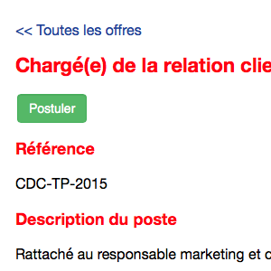 - Un bouton "Postuler", pour permettre aux candidats de vous adresser leurs lettres de motivation et CV.
