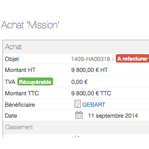 - un tag d'information précisant si l'achat est facturé ou à refacturer