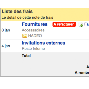 - Dans la liste des notes de frais du mois : un lien "facturer" sur chaque frais de votre note, ayant été désigné comme "A refacturer", pour générer une nouvelle facture, ou ajouter le frais sur une facture existante