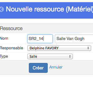 - Le type de ressource : ici, sélectionnez "salle"