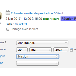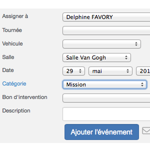 Lors de l'ajout d'un rendez-vous, d'une mission, d'une intervention client, à partir du bloc "tâches et rendez-vous", un nouveau champ s'affiche pour vous permettre de sélectionner une salle.