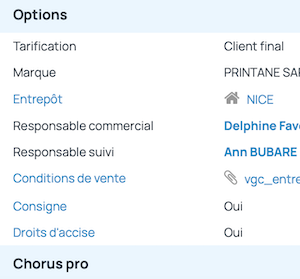 - Sélectionnable dans les filtres de recherche des documents commerciaux