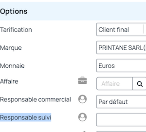 A création d'un document commercial, ou à modifification vous pouvez affecter le responsable suivi, choisi parmi les utilisateurs de votre compte.