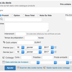 - Ajouter rapidement une liste de 20 références du catalogue produits en y associant les quantités et unités de conditionnement, pour les ajouter dans un devis ou facture