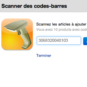 En cliquant sur ce lien, une fenêtre s'ouvre vous permettant d'ajouter vos articles, en scannant vos code-barres.