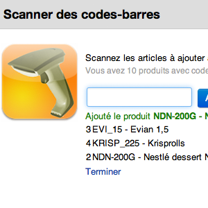 En cliquant sur ce lien, une fenêtre s'ouvre vous permettant d'ajouter vos articles, en scannant vos code-barres.