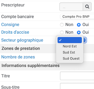 L'activation de l'App "Secteur géographique des bons d'intervention" ajoute un nouveau champ "Secteur géographique" sur vos documents avec un menu déroulant reprenant les secteurs à sélectionner.
