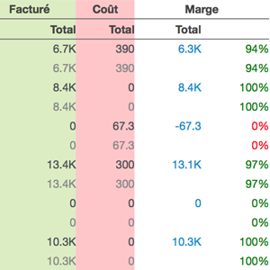- Coût : Somme des charges liées aux achats et aux notes de frais