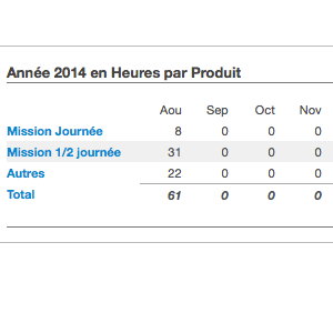 - un nouveau critère dans sélection dans le tableau de bord d'analyse de temps passé, pour afficher les temps mensuels par produit.