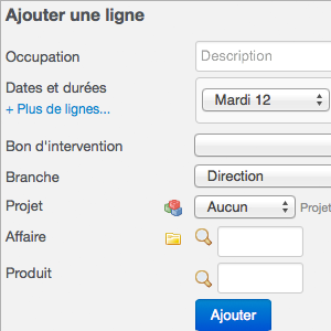 - un nouveau champ "produit" sur les lignes de feuilles de temps, permettant de lier du temps passé à un produit