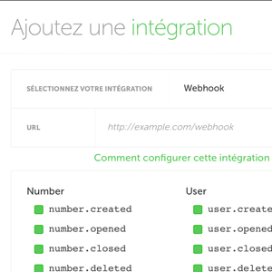 - Sélectionnez "webhook" dans le menu déroulant des possibilité d'intégration