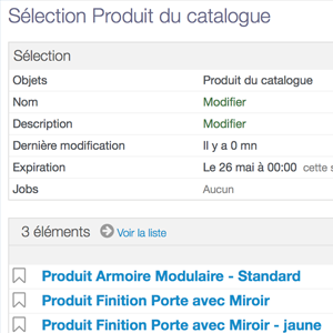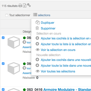 Cochez les objets à intégrer dans une selection, dans votre liste d'objets affichés