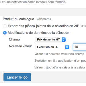 Pour cela, cliquez sur le menu "Nouveau job" présent dans le bloc de raccourcis de la page de sélection. Définissez alors l'opération à réaliser sur votre sélection.