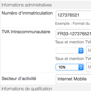 L'installation de l'app ajoute sur les fiches Sociétés, des clients et fournisseurs, des nouveaux champs dans la zone TVA pour saisir :