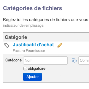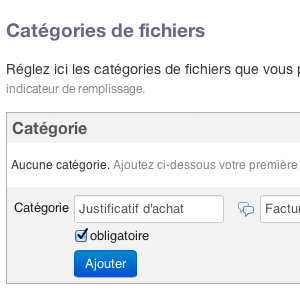L'activation de l'app vous permet de configurer des catégories de fichiers que vous pourrez joindre à chaque objet de l'application.