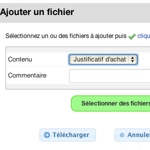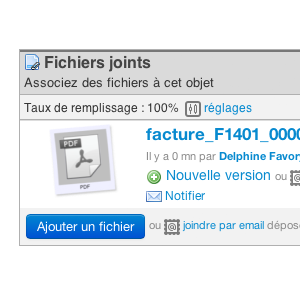 Lorsque sur un de ces objets, vous ajouterez le fichier, sélectionnez le type de fichier joint, afin d'enregistrer le dépôt du document. Un indicateur visuel sera affecté à la pièce pour prouver le dépôt.