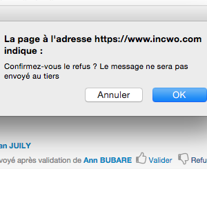 - S'il clique sur "Refuser" : le message ne part pas et reste visible pour vous pour référence