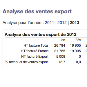 Dans le tableau "Analyse des ventes export", retrouvez, pour chaque année, votre chiffre d'affaires :