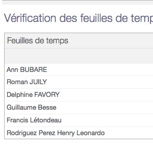 Ce nouveau menu permet aux utilisateurs autorisés sur cette app, d'afficher l'état des feuilles de temps pour tous les collaborateurs de l'application.
