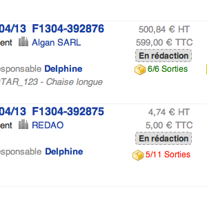 - 0/6 sorties : indique qu'aucun article sur les 6 quantités facturées ou livrées, n'a été sorti du stock