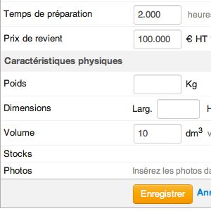 L'activation de l'app ajoute sur vos fiches produits un nouveau champ "volume" vous permettant de saisir le volume unitaire de votre produit en "dm3" .