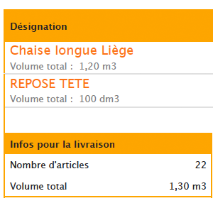 - Sur vos bons de commande et bons de livraison : le volume total des articles présents dans votre commande, et la volume par ligne d'articles.