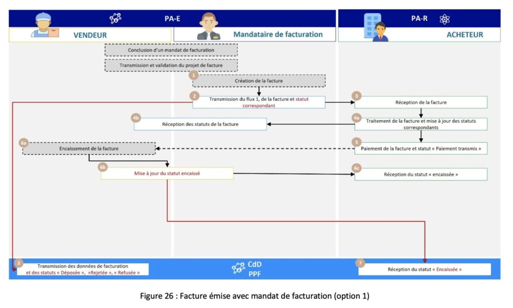 Le principe de délégation reste identique. Ce qui change, c’est le circuit technique et la façon dont le vendeur récupère les informations liées au traitement de ses factures.