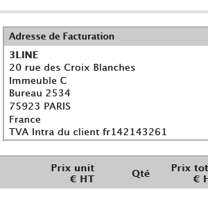 Any address entered on 3 lines for a contact or company is automatically included on 3 lines in the sales documents generated (quotations, invoices) to which the customer is attached.