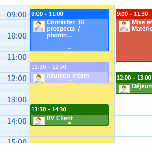 With the"Event Categories" app, create your own event and task categories, assign a color to them, and attach your appointments, missions, interventions or other calendar operations to a category.