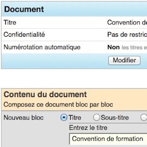 - First, fill in the document presentation form: name, access authorization, template and choose whether you wish to apply automatic numbering to document titles and subtitles.