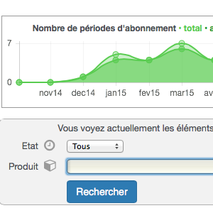 Are your settings complete? Still on your contract, click on Generate periods. The application then generates your subscription periods, which you can view in a list, with a graph of your sold and invoiced subscriptions.