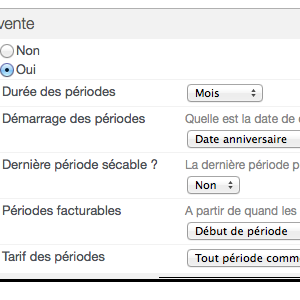- Period rate: choose whether your periods are due as soon as they start, or whether they can be billed on a pro rata basis. In the latter case, the pro rata calculation is done for you.