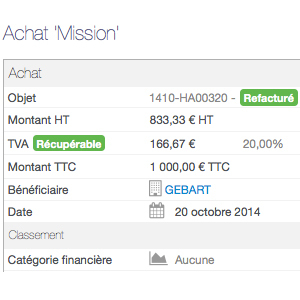 - a"purchase rebilling" link in the shortcut block, to convert your purchase into an invoice.
