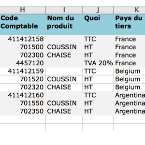 Differentiate the accounting codes of your products for sales and your financial categories for purchases, according to the country of the customer or supplier: France / EEC / international. Export product accounting codes in the Sales and Purchases Accounting Plus export.