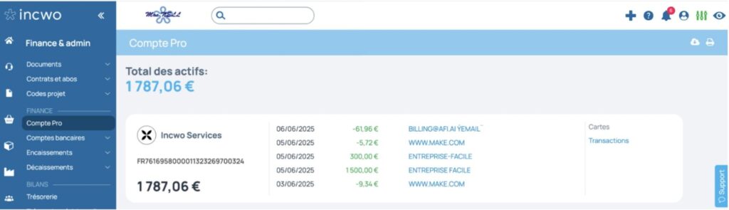 Sur la page de traitement des écritures bancaires, vous pourrez alors rapprocher les lignes de relevés Qonto d’un achat ou une facture émis sur incwo.