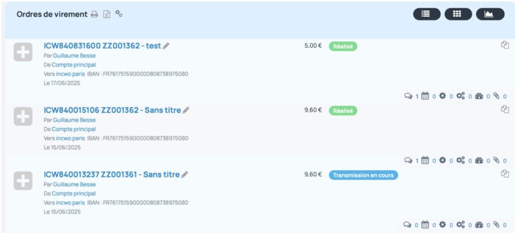 Une fois l’ordre de virement créé, il convient de vérifier :
